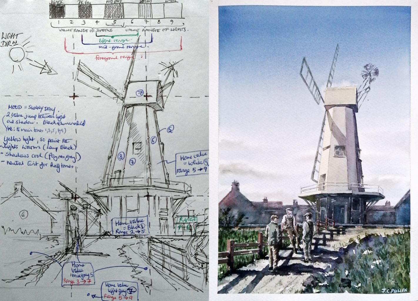 Figure 5: The tonal watercolour painting of "The Windmill" by Jonathan Pullen