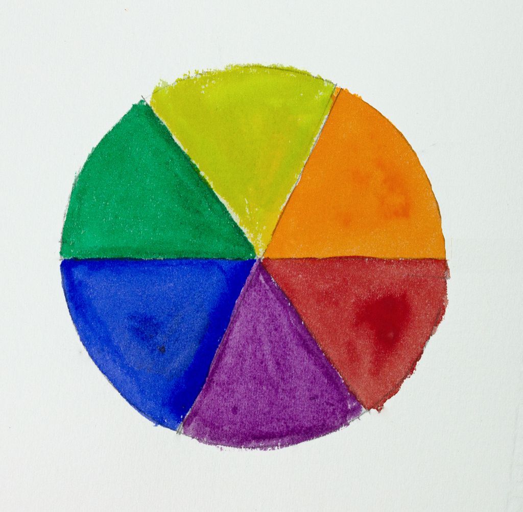Figure 2: The watercolours used to paint this colour wheel, were all single pigmented; Cadmium Lemon Yellow, Cadmium Orange, Cadmium Red, Manganese Violet, Ultramarine Blue and Phthalo Green (YS) from the A J Ludlow Professional Watercolour Range.