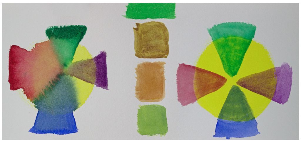 Here is a question for you the reader: is the result of mixing a primary with a secondary to cancel each other out as predicted by this complementary colour concept, or just the fact of mixing three pigments together?