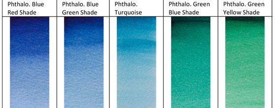 The greenish β-copper phthalocyanine is a very good clean transparent blue and can be used on the artist’s palette as a cool primary blue.